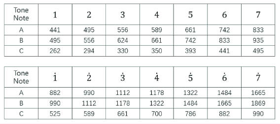 Bảng thể hiện sự tương quan giữa nốt nhạc và tần số